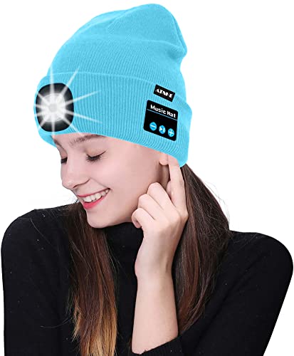 ATNKE Berretto Bluetooth con LED Illuminato, USB Ricaricabile Wireless Musicale Cappello da Corsa Ultra Bright 4 LED Impermeabile Lampada Uso per Sci Escursionismo Campeggio Ciclismo