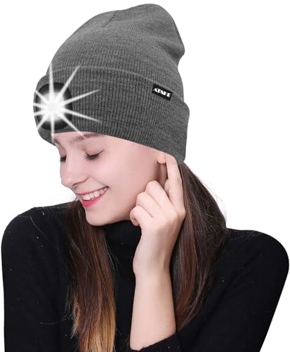 ATNKE LED Cappello Illuminato Berretto,USB Ricaricabile Cappello da Corsa 4 LED Impermeabile Luce Invernale Calda Lampada Frontale Regali per Uomo e Donna/Grey