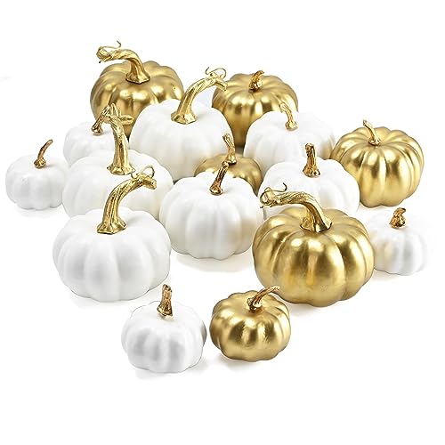 Atoke 16 Pezzi Zucca Artificiali,Grandi Finta Decorative Zucca Autunnali Set per Halloween Decorazioni Festa Halloween Tavolo Tema Autunno