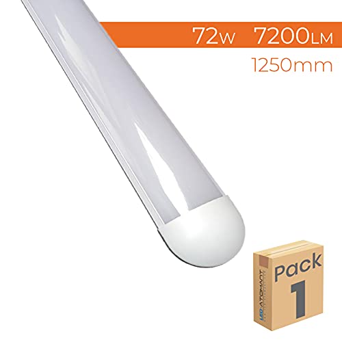 [Illuminazione di alta qualità] Intensità luminosa di 7200 Lumen veri progettati in un fascio di luce di 160 gradi. Ha un diffusore opale in cui si fornisce una corretta distribuzione dalla luce, evitando bagliori e offrendo una luce piacevole alla vista. L'indice di risa cromatica +80CRI guarantisce una corretta riproduzione dei colori.