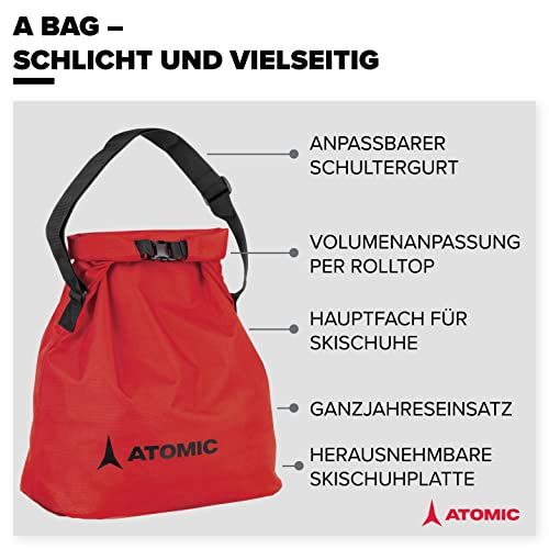 Atomic A Bag - Borsa per scarponi da sci, pratica borsa per l'inverno e l'estate, tracolla regolabile e roll top, piastra rimovibile per scarponi da sci, rosso/nero, Misura standard, Borsa da sci