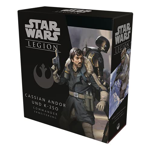 Con questa espansione, puoi aggiungere il comandante Cassian Andor e K-2SO alla tua Legione di Star Wars. Cassian Andor è supportato dal droide di sicurezza riprogrammato serie KX K-2SO