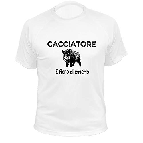 AtooDog Maglietta da Caccia, Cacciatore e Fiero di esserlo, Cinghiale (40221, Bianco, 12a)