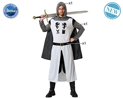 Tunica lunga, passamontagna con mantello e cintura di cavaliere medievale, un costume medievale per uomo