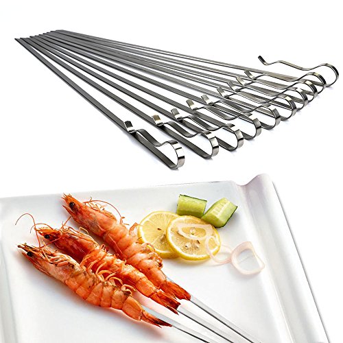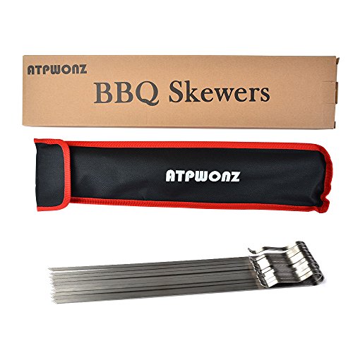 ATPWONZ 10pcs Spiedini per Carne Riutilizzabili - Picchi Barbecue Situato Grigliate Spiedini Barbecue Tasca in Acciaio Inox (43cm)