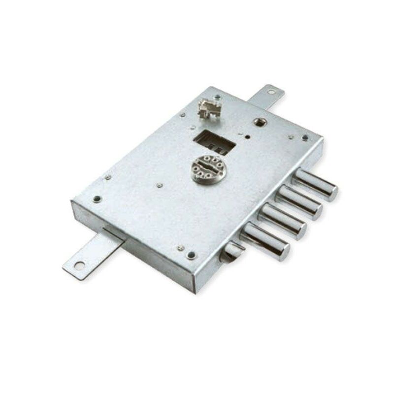 Serratura doppia mappa a planare 2 chiusure verticali Catenacci laterali 4 pistoni e scrocco Scrocco azionato da maniglia quadro mm 8 e chiave Misura scatola mm 206x142x31 - Entrata mm 63 3 chiavi