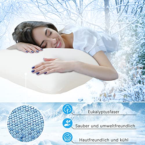 ATsense Set di 2 federe per cuscino rinfrescante, 40 x 40 cm, in fibra fredda, super morbida, traspirante, protegge la pelle e i capelli, 100% lyocell con chiusura lampo