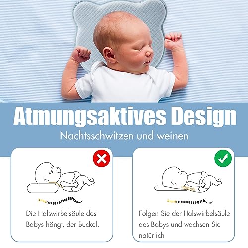 ATSGJLZN Cuscino Neonato, Cuscino per Bambino antisoffoco Anti Testa Piatta 100% Memory Foam Traspirante e Anti-allergia Adatto Cuscino Nanna Sicura Neonato per Neonati da 0 a 12 Mesi Bleu