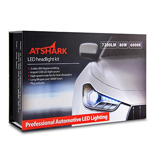 ATSHARK 2x A340-H8/H9/H11 Farettto Faro Auto 3 80W COB LED 7200LM Lampadina Bianco Luce Conversion Kit Accessore 360?30LM/W Lunga Durata Aeronautico Alluminio Acanzato Radiatore Retrofit