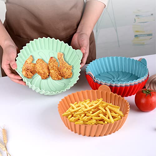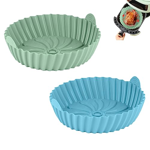 Atsmoce 2 Pezzi 20 cm Teglia in Silicone per Friggitrice ad Aria, Cestello per Friggitrice ad Aria in Silicone, ad Aria Applicabile Airfryer, Riutilizzabile e Semplice da Pulire... (Verde e Blu)