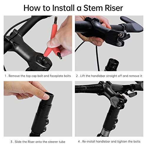 Facile da installare: adattatore per manubrio della bicicletta, rialzo del manubrio. L'installazione è molto semplice, basta far scorrere la prolunga sul tubo della forcella e stringerla saldamente