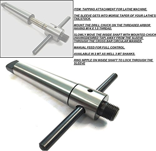 La manica entra nel puntello del tuo portellone del tornio. MONTARE IL MANDRINO TRAFORANTE SUL ARBOR FILETTATO CON FILETTATURA M14 X 1.25. Spostare lentamente l'albero interno con mandrino montato (con rubinetto desiderato) lontano dalla manica attraverso la barra trasversale circolare, alimentazione manuale per controllo completo.