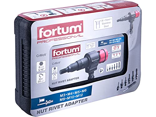 Attacco per rivettare per trapano o trapano a batteria per dadi per rivetti M3-M12 (7 mandrini per rivetti), impugnatura a T, CrMoV, Attacco per dadi per rivetti Fortum 4770664