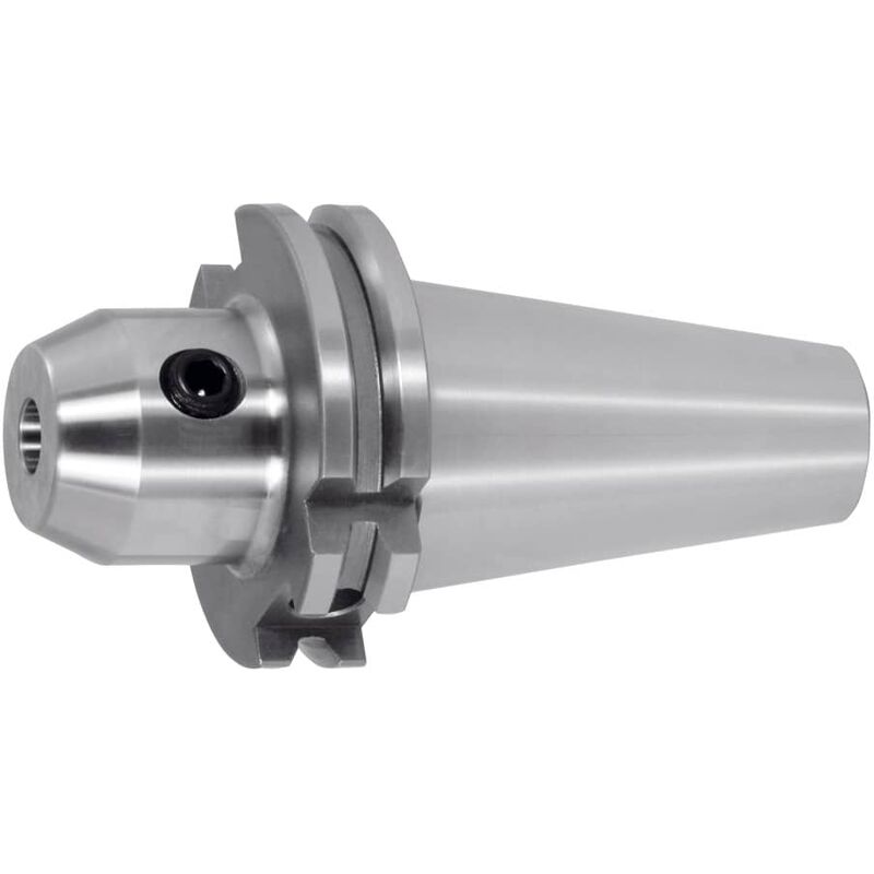 Con vite d'arresto. Codoli con tornitura dura (silenziosità!). Con foro Balluffchip / RFID. Vantaggi: L'utensile viene serrato lateralmente con vite di serraggio e sostenuto dalla parte posteriore mediante la vite d'arresto. In questo modo si ottiene un serraggio senza gioco e vibrazioni. Uso: Per il serraggio di utensili con codolo cilindrico e superficie di serraggio inclinata (2°) a norme DIN 1835 E e DIN 6535 HE. * La perdita in lunghezza dell'utensile dovuta alla riaffilatura sul lato frontale può essere corretta mediante la regolazione assiale. Accessori speciali: Codoli (AB) n. art. 308600 − 308806, chiavi di serraggio AB n. art. 308820 − 308835. Dati tecnici Adattatore SK 50 corto Norma attacco ISO 7388-1 Precisione della concentricità radiale µm ≤ 3 Strategia di truciolatura HPC Forma ADB Norma DIN 6359 Qualità equilibratura G con numero di giri G 6,3 con 25000 min-1 Tipo di prodotto Mandrino ⌀ Attacco D1, mm 25 Sporgenza totale Dim. A, mm 80 Vite di serraggio di ricambio n.
