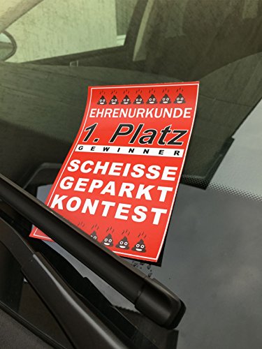 Attestato per vincitore (blocco) " 1° posto - concorso Parcheggio di merda - attestato di benemerenza, per parabrezza, rosso, blocco da 25 fogli 160 gr/M² su cartoncino, parcheggio di merda, per chi non rispetta il codice della strada, per chi non sa parcheggiare.