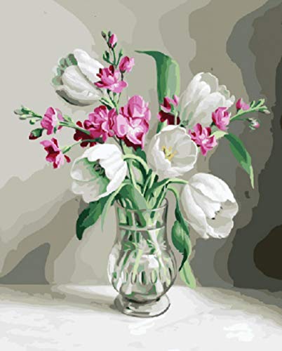 ATTLEIS Dipingere con i Numeri Kit con pennelli e pigmento Acrilico, Bel Fiore 40 x 50cm Pittura su Tela per Adulti e Bambini con Colori Acrilici e 3 spazzole Senza Telaio