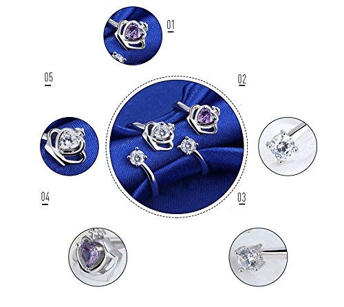 AttractiveCreative, anello aperto femminile con diamanti bend viola a forma di cuore di cristallo anello decorazione gioielli accessori per Natale, San Valentino, compleanno, matrimonio, per donne 1 pezzo