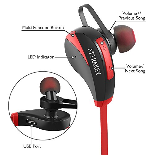 ATTRAKEY Cuffie Bluetooth, S350 Wireless In-Ear Auricolari Sport sweatproof auricolari cancellazione del rumore cuffie con microfono per Running, Jogging rosso Red
