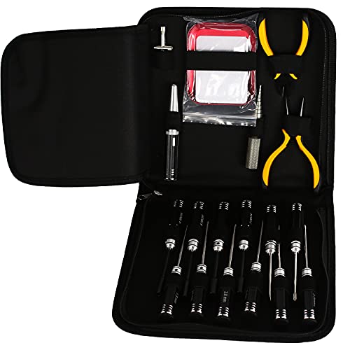 【Versione aggiornata】 Ottimo strumento di riparazione per riparazioni, adatto per RC Crawler auto, barca, drone, quadricottero, modello, strumento di riparazione cellulare. La testa di trasmissione è realizzata in acciaio ad alta velocità, è resistente allo spelatura e alla rottura, antiruggine e durevole, che non è facile da danneggiare e progettato per prestazioni di lunga durata. Il set di attrezzi per cacciavite è la scelta migliore per gli appassionati di modelli RC avanzati