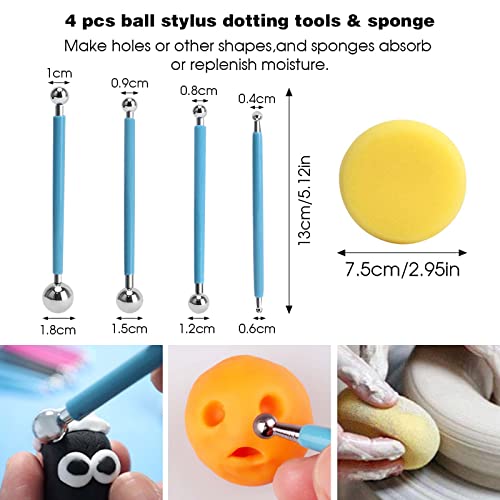 【KIT DI SUPER VALORE】: Il set di strumenti per l'argilla ceramica comprende 4 strumenti di puntinatura con stilo a sfera, 5 strumenti per ceramica in legno, 5 penne con punta in gomma, 5 penne a doppia punta, 4 strumenti per ceramica in plastica, 14 strumenti per argilla in plastica, 4 strumenti per tagliare l'argilla, 1 spugna e 1 sacchetto di stoccaggio. Gli strumenti completi possono soddisfare le vostre esigenze. Ottimo kit per artisti e principianti!
