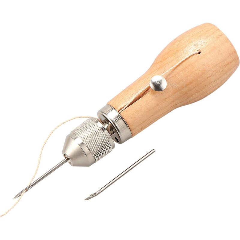 Materiale: Composizione: manico in legno e ago in metallo. Ago da cucito e filo cerato all'interno del manico in legno. Inserire la striscia di metallo duro nel foro laterale superiore in metallo e tirarla per aprire il coperchio. Il perforatore include un punteruolo, un rocchetto di filo cerato ad alta resistenza (circa 25 m) e 2 aghi (1 dritto e 1 curvo). Consente di cucire qualsiasi materiale pesante in modo rapido e semplice.Uso un ago a filo ricurvo per cucire in spazi di cucito difficili da raggiungere.L'ago dritto a filo sottile è da utilizzare con filo cerato fine per lavori più delicati. Gli aghi possono essere cambiati e sostituiti facilmente.Gli aghi sono taglienti, tienili fuori dalla portata dei bambini. Questi aghi facilitano la cucitura della pelle. Perfetti per riparare tende, zaini, sacchi a pelo, selle, imbracature e molto altro.