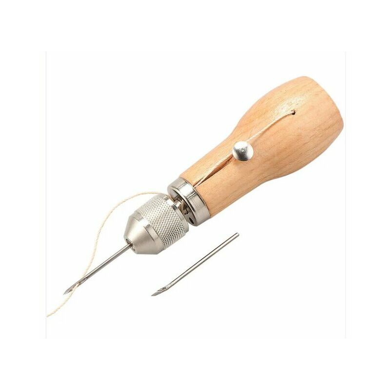 Materiale: Composizione: manico in legno e ago in metallo. Ago da cucito e filo cerato all'interno del manico in legno. Inserisci la striscia di metallo duro nel foro laterale superiore in metallo e tirala per aprire il coperchio. Il punzone include un punteruolo, una bobina di filo cerato ad alta resistenza (circa 25 m) e 2 aghi (1 dritto e 1 curvo). Semplifica e velocizza la cucitura di qualsiasi materiale pesante. Usa un ago a filo ricurvo per cucire negli spazi di cucitura difficili da raggiungere. L'ago dritto a filo fine è da utilizzare con filo cerato fine per lavori più delicati. Gli aghi possono essere cambiati e sostituiti facilmente. Gli aghi sono affilati, tenere fuori dalla portata dei bambini. Questi aghi ti facilitano la cucitura della pelle. Perfetto per riparare tende, zaini, sacchi a pelo, selle, imbracature e molto altro.Descrizione del prodotto Eccellente per riparare tende, zaini, dormienti borse, tappezzeria, con la possibilità di creare il proprio kit. Usa l'ago