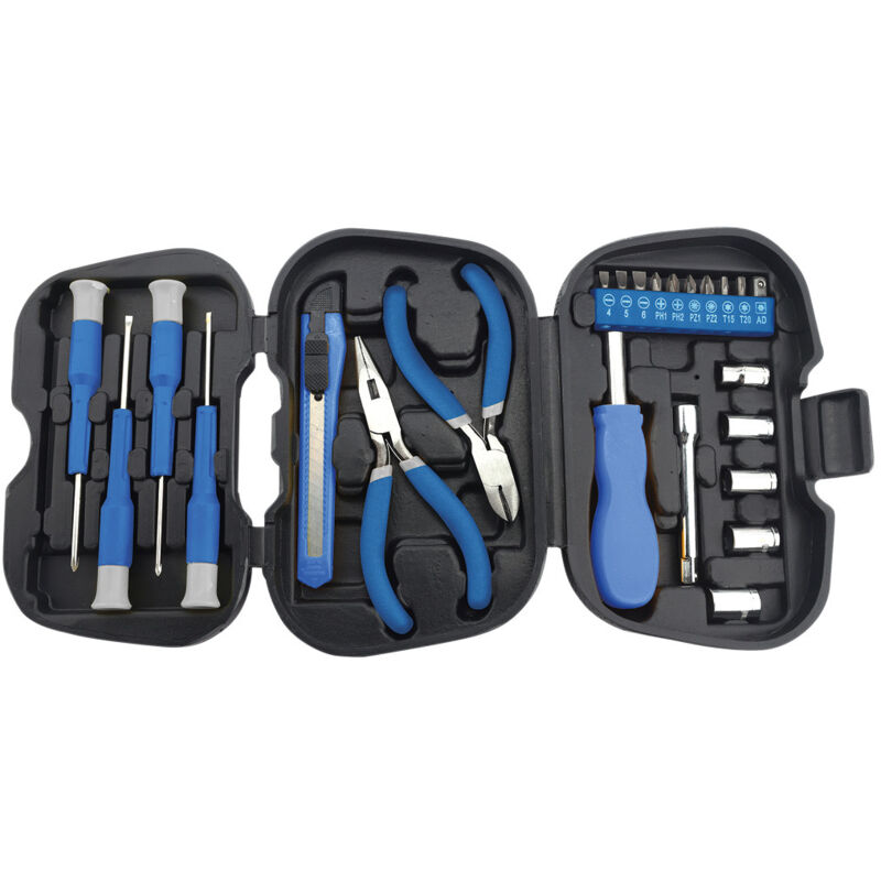 Il kit di strumenti domestici di base è un set completo progettato per soddisfare un'ampia gamma di riparazioni domestiche e esigenze fai-da-te. Con 26 parti accuratamente selezionate, questo kit offre soluzioni versatili per le situazioni quotidiane che richiedono strumenti affidabili. Una delle caratteristiche più notevoli del kit è la sua ampia varietà di strumenti, inclusi cacciaviti, pinze, chiavi inglesi e ulteriore. Alcune delle principali caratteristiche tecniche del kit includono: Punte assortite: Il kit include 9 punte che coprono diversi tipi come piatti, Philips e torx, garantendo la compatibilità con una varietà di viti. Impugnatura del connettore del driver: un'impugnatura ergonomica e comoda semplifica l'utilizzo delle diverse punte, offrendo comfort e controllo durante le attività . Adattatore per serratura: l'adattatore consente di utilizzare i 5 fori per serratura inclusi con una presa da 1/4, offrendo flessibilità per applicazioni di diverse dimensioni . Oltre a