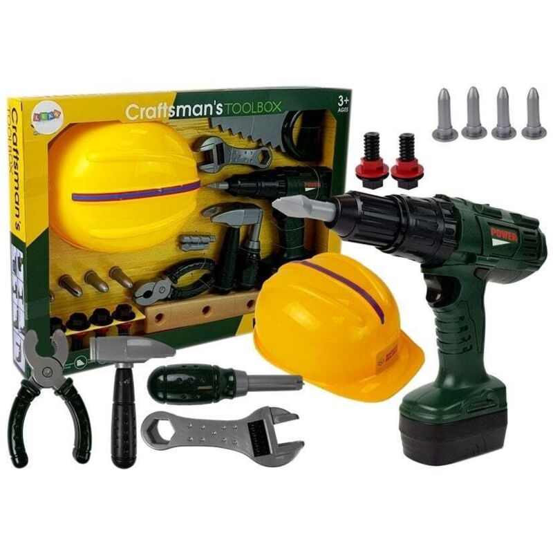 Un set di attrezzi con trapano e casco è il regalo ideale per un piccolo fai-da-te. Questo set contiene strumenti ben fatti e lucidati realizzati interamente in plastica. Ogni bambino dovrebbe avere tali strumenti per diventare l'assistente di un padre e di un nonno. Tutti gli elementi inclusi nel set sono l'inizio per creare il tuo laboratorio. Il bambino impara a distinguere forme e colori, a sviluppare manualità e precisione, ma soprattutto a sviluppare fantasia e concentrazione. Il trapano ha una forma perfetta per le mani piccole, facilitando la presa e l'esecuzione di una varietà di lavori. Produce suoni di funzionamento di un vero trapano. Il trapano è alimentato da due batterie AA da 1,5 VV. Il set è destinato a bambini dai 3 anni. Il giocattolo è certificato CE e soddisfa la norma EN 71. Caratteristiche trapano a batteria pinze Cacciavite chiave martello 4 viti 4 noci legno per avvitare le viti casco Dimensioni trapano: 24 cm x 19 cm x 7 cm Alimentazione: 2 AA