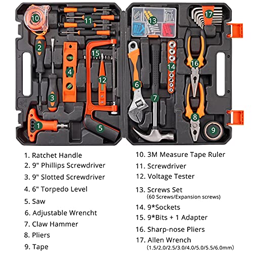 Set di Attrezzi 82 in 1, JiGiU Set di Attrezzi da Lavoro Portatile con Valigetta Rigida in Plastica Multifunzionali Valigetta Attrezzi Completa con Martello Pinze Chiave Cacciaviti Metro a Nastro