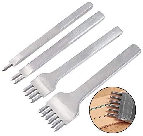 YFOX Set di attrezzi per la produzione di pelle, 4 mm, 1/2/4/6, forchetta in pelle, in acciaio al manganese, per fai da te, utensili da punzonatura in acciaio inox (set da 4 pezzi, 1 mm di diametro)