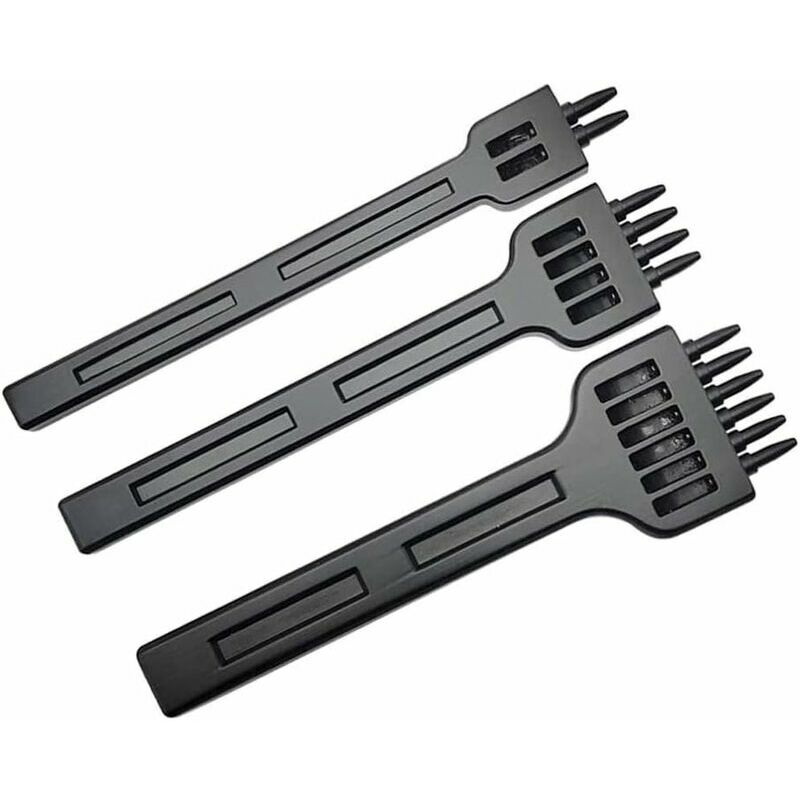 La confezione include: 3 pezzi di perforatori per pelle nella confezione. È composto da tre punzoni ad artiglio 2/4/6 con specifiche diverse, con un passo dei denti di 4 mm, che possono soddisfare rapidamente i requisiti di perforazione della maggior parte dei materiali in pelle. ;