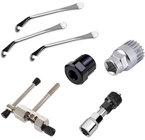 Kit di Attrezzi per Riparazione della Bicicletta,Xiuyer 7 Pezzi Set di Utensile Interruttore Catena Estrattore per Pedivella Bici Rimozione della Ruota Libera Smontaggio Staffa e 3 Leve per Pneumatici