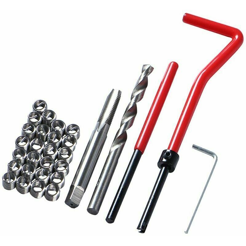 30x Metrico M5 M6 M8 Car Pro Coil Tool Kit di inserti per la riparazione del filo Caratteristiche: Il kit di riparazione del filo include 25 inserti filettati /15/10. Ideale per ripristinare filettature danneggiate, adatto per la riparazione di motori e altri veicoli a motore. Applicazioni per acciaio, ghisa e alluminio. Può essere utilizzato nella riparazione quotidiana, riparazione auto, trapano, ecc. Realizzato in materiale di alta qualità, robusto e resistente. Specifiche Materiale del maschio e della punta del trapano: HSS Specifiche della filettatura: M4 M5 M6 M8 M10 M12 M14 Materiale degli inserti filettati: acciaio inossidabile /> Condizione: nuovo < br/> Legenda: elettroforesi superficiale Paese/regione di produzione: Cina Colore: come mostrato Tipo: inserto Heli-Coil Incluso: Combinazione M6: M6 x 25 Materiale Viti in acciaio inossidabile Chiave di riparazione x 2 trattamento trattamento Elettroforesi superficiale Punta 6,2 mm h lico dal x 1 materiale HSS Maschio a bussola