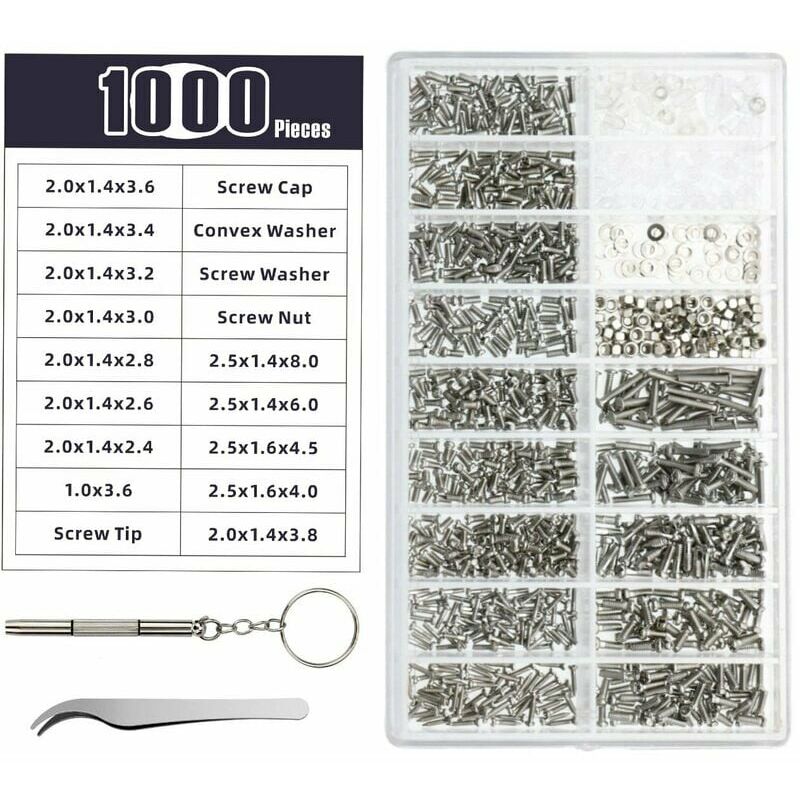 Descrizioni: Una scatola di 1000 piccole viti Caratteristiche: Dimensioni della scatola: (circa) 109 * 64 * 15 mm Peso: ca. 74 g Quantità: 1000 pezzi Colore argento Materiale: acciaio inossidabile plastica (confezione) Caratteristiche del cacciavite: Questo cacciavite multifunzionale viene utilizzato per riparare occhiali e orologi. Materiale: acciaio, alluminio Diametro del portachiavi: circa 2,3 cm < p>Con portachiavi, portatile e facile da appendere Lunghezza totale (senza portachiavi): circa 6 cm p> Sarà più economico a volte quando fai acquisti sui tuoi dispositivi mobili o quando acquisti due pezzi/set o più Buon shopping. .. Benvenuto a fare nuovamente acquisti qui per occhiali, occhiali da sole, orologi, telefoni cellulari e altri dispositivi precisi. Contenuto della confezione: < p>1x custodia per accessori per viti per occhiali 1 cacciavite per riparazione occhiali 4 in 1