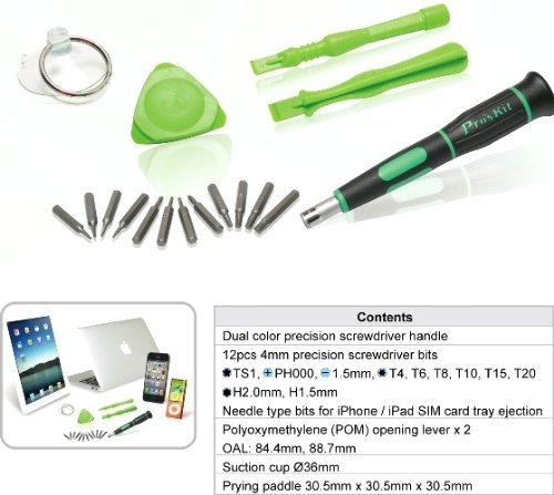 Pro'skit Set 17 attrezzi per la riparazione di smartphone, cassetta attrezzi per dispositivi apple, cacciavite con punte di precisione intercambiabili