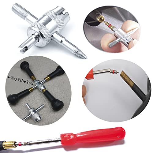 QISF Attrezzi per valvole Pneumatici | Smontavalvole gomme | 20 X Valvola Core Pneumatico | 10 X Cappucci delle valvole | 4 X Smontavalvole | Attrezzi e Kit per Riparazione Pneumatici