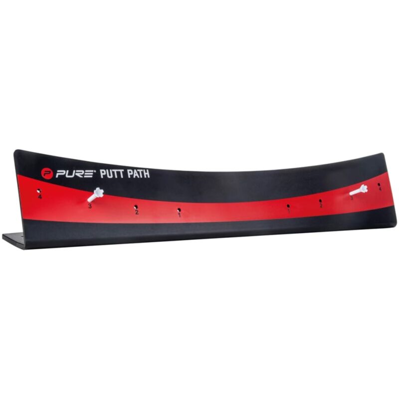 Migliorate il vostro gioco sul putting green con questo strumento per allenare il putt della Pure2Improve! Lo strumento per allenare il percorso vi insegner� il corretto percorso del putter, la giusta accelerazione e come mettere in squadra la superficie di impatto del putter. Questo strumento per allenare il percorso del putter ha una forma unica che stabilisce il percorso corretto del putter durante il colpo. Pu� essere utilizzato sul green, a casa o in ufficio. I giocatori possono usare i loro putter. La consegna include anche le guide per uniformare la lunghezza del colpo. Colore: Nero e rosso Materiale: PVC Dimensioni: 60 x 12 x 15 cm (L x P x A)