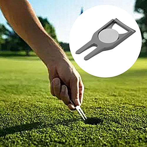U/ D Attrezzo da golf Divot, 3 in 1 multifunzione Golf Divot Riparazione Pitch Fork In Lega di Zinco Verde Pitch Mark Strumento di Riparazione con Indicatore Palla (Nero)