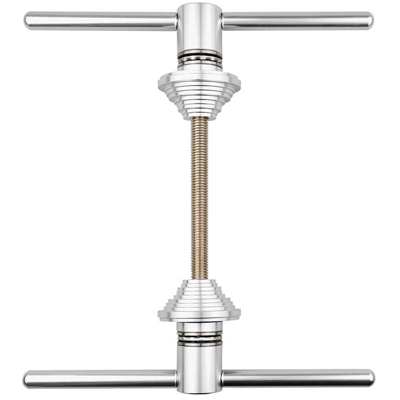 Questo strumento rende l'installazione della cuffia c up e della racchetta b ottom b facile e professionale. Caratteristiche: Realizzato in lega di alluminio e materiale in acciaio inossidabile, antiruggine, robusto e durevole da usare. Doppia maniglia a T con design staccabile, eroga una coppia potente per semplificare l'installazione. Il design integrato per il giunto e il cuscinetto reggispinta, rende l'operazione più stabile e fa risparmiare lavoro. L'asta filettata da 250 mm si adatta alla maggior parte delle lunghezze del tubo sterzo. Piastra a pressione con doppi lati, il lato inferiore viene utilizzato per assemblare la calotta della serie sterzo a pressione e il lato superiore viene utilizzato per assemblare il movimento centrale a pressione. Molteplici dimensioni di blocchi di pressatura si adattano a più specifiche di serie sterzo e movimento centrale. Ottimi accessori per la riparazione della bici per l'installazione della coppa dell'auricolare e del movimento centrale.