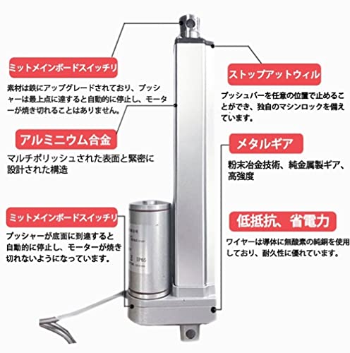 PRESTAZIONI STABILI: l'attuatore lineare è IP65 impermeabile e antipolvere, durevole e stabile nelle prestazioni. Design a basso rumore, il livello di rumore è inferiore a 60 decibel. Funzionamento silenzioso e risparmio energetico.