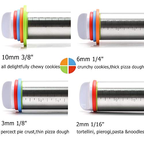 【Il vostro aiuto perfetto fatto in casa】 anelli rimovibili in 4 misure: 1/16, 1/8, 1/4, e 3/8 pollici (2 mm/4 mm/6 mm/10 mm). Il mattarello TOONEV in acciaio inox è lo strumento perfetto e compagno di cottura e cottura. Facile impastare l'impasto allo spessore previsto per un principiante o una vecchia mano.