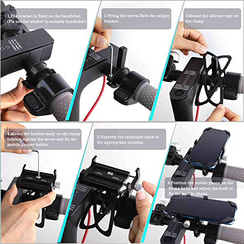 Atuka Mountain Bike e Bicicletta Alluminio Phone Mount regolabile Anti Shake Metal Universal Bike Phone Mount Scooter Porta telefono con Anti Shake Silicone Strap Nero