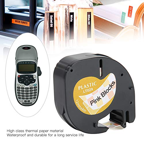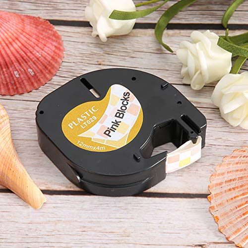 Atyhao Nastro per Etichette, Nastri Adesivi per Etichette in Carta Termica a Blocchi Rosa da 12 mm per etichettatrice Dymo letraTAG 4 metri/13,1 Piedi
