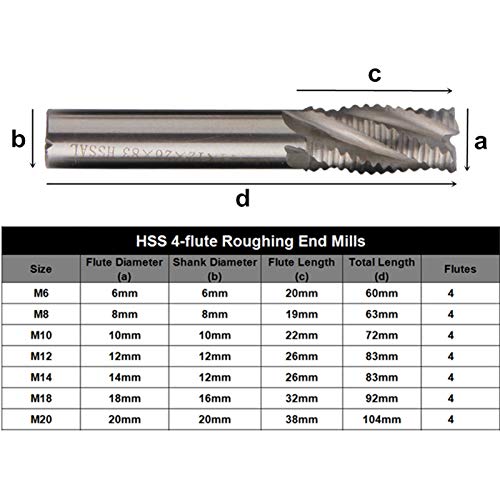 Auart Zyilei-Shank 4-Flauto sgrossatura carburo di carburo taglierina HSS End Mill Spirale Router Bit Diametro 6mm-20mm Skink Skink 1pc, Strumenti durevoli (Cutting Edge Diameter: M6)