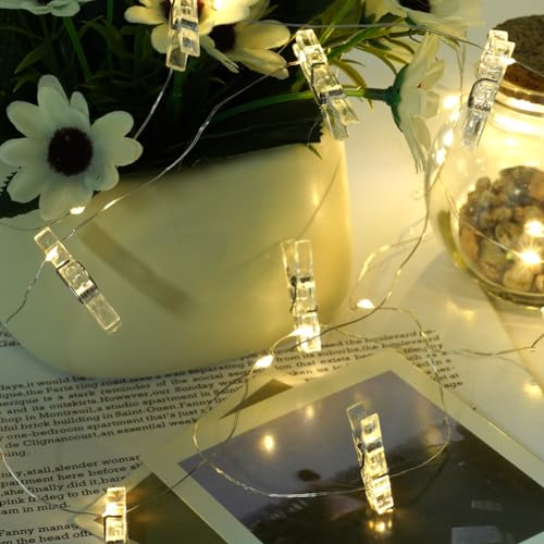 【CONFORTEVOLE E FLESSIBILE】la striscia luminosa bianca calda per clip per foto è molto flessibile. Possono essere piegati attorno a qualsiasi cosa per decorare il luogo. Le clip sono fornite separatamente in modo da poterlo utilizzar