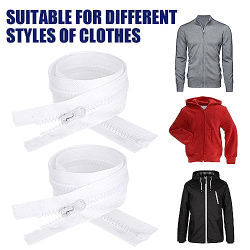 AUAUY 2Pz Cerniera Lampo lunga 60 cm, Cerniere Lampo Divisibili con 5 Cursori in Metallo, per Cucito e Artigianato per Stoffa Vestiti Borse per Cucire a Macchina Patchwork Tessuto di Cotone (Bianca)