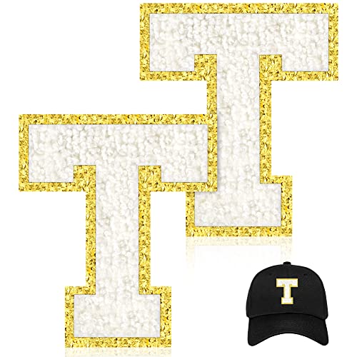 AUAUY 2 Pezzi Patch Lettere, Lettere Termoadesive per Tessuti, Toppe Termoadesive di Lettere, Patch Lettere e Patch Decorative, Toppe Adesive Ricamate con Glitter Dorati per Vestiti Jeans Zaini (T)