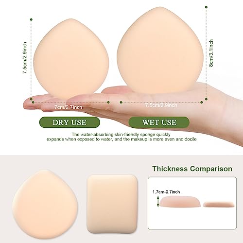【Uso bagnato e asciutto】 La spugna per il trucco può essere utilizzata bagnata o asciutta, la spugna morbida ed elastica senza lattice si ingrandirà quando è bagnata. Adatto per cipria, cipria in polvere, ombretto e cipria, può essere utilizzato anche per fondotinta, crema BB, crema base e correttore, ecc. La superficie ampia e morbida consente una facile applicazione per una finitura impeccabile ed elegante.