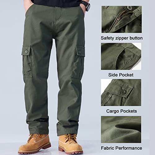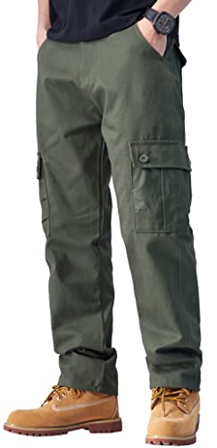 AUBIG Pantaloni Cargo Casual da Uomo Pantaloni Lunghi Multi Tasche da Campeggio per Escursionismo da Pesca Leggero All'aperto Pantaloni Dritti in Tinta Unita con Bottone Verde Militare XXL