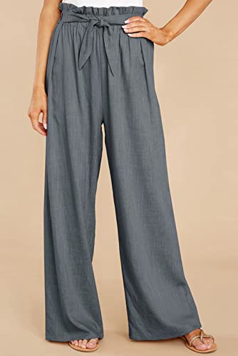 AUBIG Pantaloni a Gamba Larga da Donna Pantaloni Capri in Cotone Elasticizzato Taglie Forti Pantaloni Svasati alla Moda da Donna Pantaloni Lunghi dalla vestibilità Ampia Pantaloni Casual Grigio M